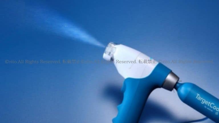 ターゲットクールは、針を使わずに冷却CO₂ガスと微細な氷の粒子で美容成分を肌の深層へ導入。
