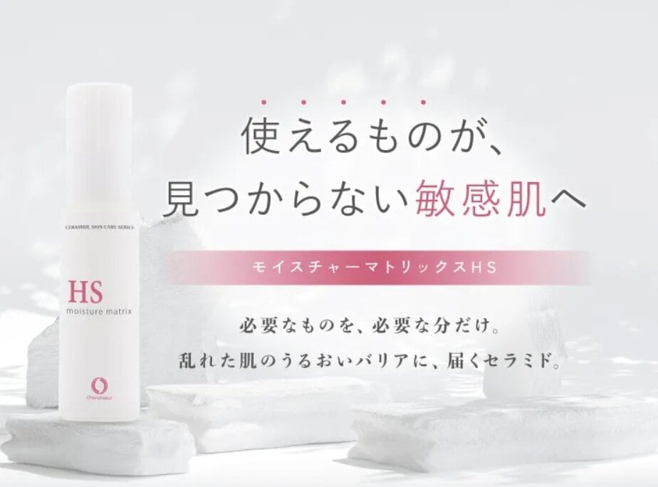 モイスチャーマトリックスHSは、オイルフリーでヒト型セラミド5種類が配合された美容液です。