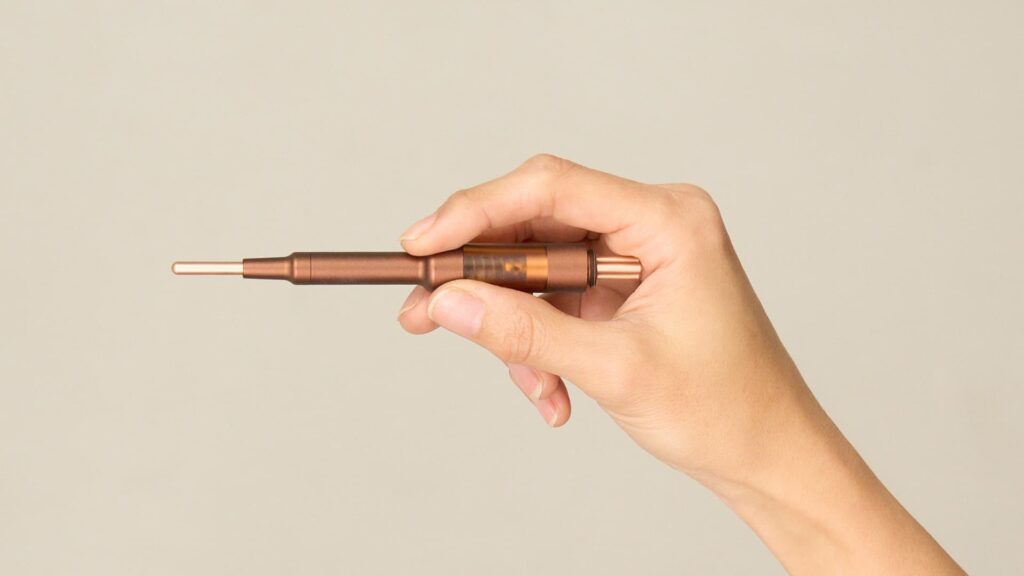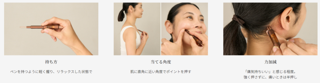 フェイスポインターの特徴はとてもシンプルで、先端を肌に押し当てて「ポスポス」と刺激を与えるだけ。