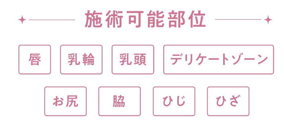 YUEN(ユエン)のローマピンクは唇・乳首・乳輪・デリケートゾーン・お尻・脇・膝の施術が可能です。